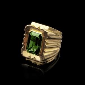 726. Bague chevalière sertie d'une tourmaline verte taille rectangle...