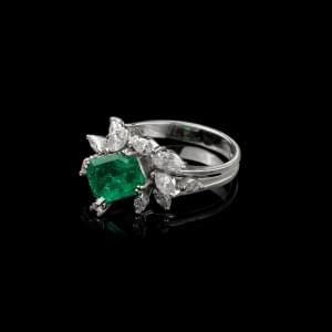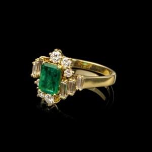 781. Bague sertie d'une émeraude taille rectangle (env. 1,4 ct) entou...