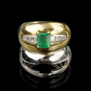 728. Bague sertie d'une émeraude rectangulaire (env. 1,2 ct) épaulée...