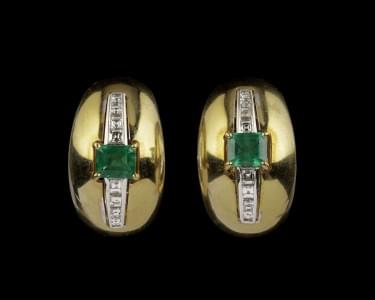 729. Paire de boucles d'oreilles bombées serties d'émeraudes rectangu...