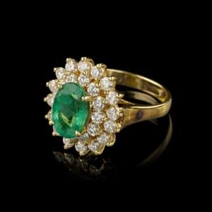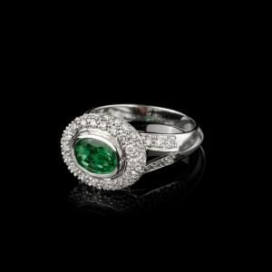 782. Bague sertie d'une émeraude taille ovale (env. 1 ct) entourée de...