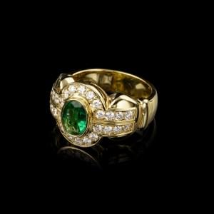 734. Bague sertie d'une émeraude taille ovale (env. 1 ct) et semi-pav...