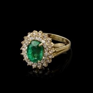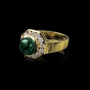 733. Bague sertie d'une émeraude cabochon entourée de diamants