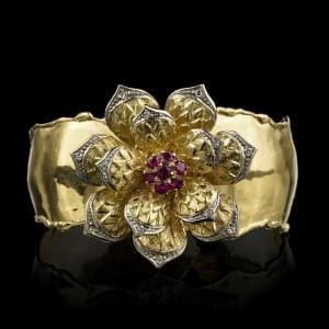 735. Pendentif fleur à motif d'étoile en diamants entourée de rubis t...