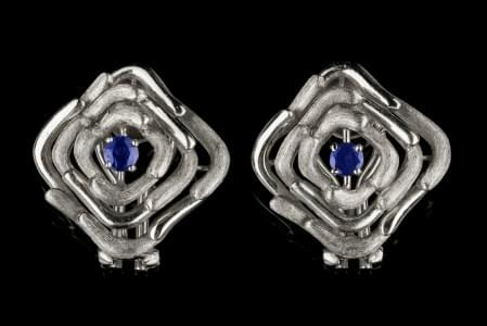 760. Paire de clips d'oreilles carrés stylisés sertis de saphirs
