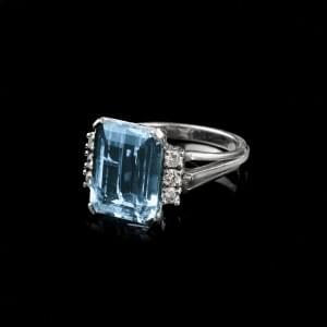 770. Bague sertie d'une topaze bleue rectangulaire (env. 8 ct) entour...