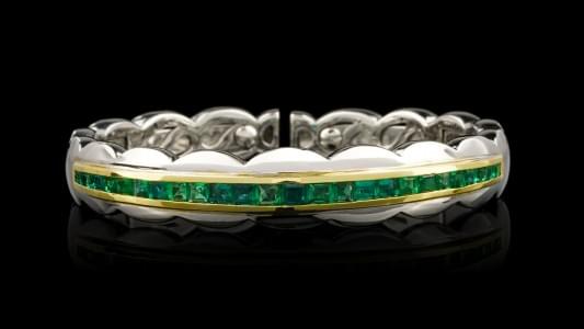 779. Bracelet jonc ouvrant serti d'une ligne d'émeraudes (env. 4,5 ct...