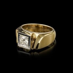 803. Bague chevalière sertie d'un diamant (env. 0,65 ct)