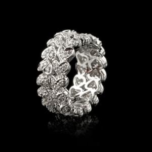 804. Bague formée de deux rangs de cœurs pavés de diamants