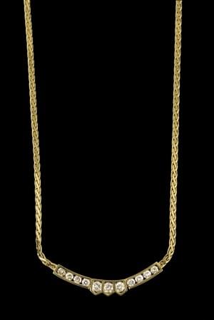 806. Collier à maille plate retenant un motif serti de onze diamants...
