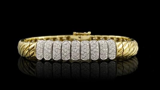 807. Bracelet orné d'un motif central pavé de diamants (env. 2,4 ct)