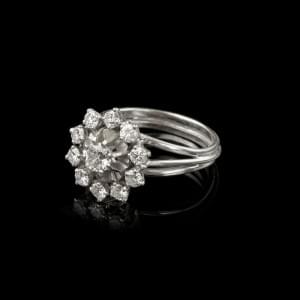 811. Bague marguerite sertie d'un diamant taille ancienne sur chaton...