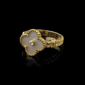 821. Van Cleef and Arpels, Alhambra, bague en nacre sertie d'un diama...