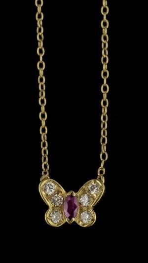 822. Van Cleef & Arpels, collier retenant un papillon serti d'un rubi...