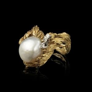 831. Gilbert Albert, bague sertie d’une perle baroque et de diamants