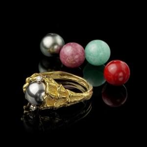 832. Gilbert Albert, bague accompagnée de ses cinq billes interchange...