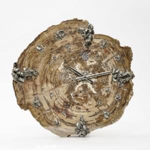 Horloge murale avec mouvement quartz, bois pétrifié et argent, v...