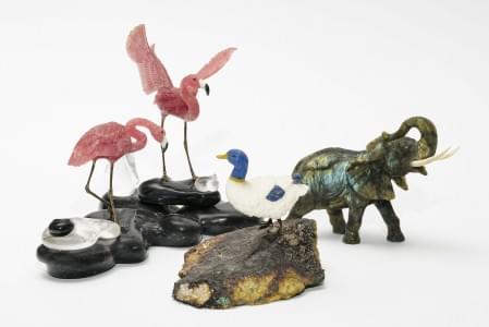 Suite d'animaux en pierre dure dont agate, quartz etc, H de 13,5...