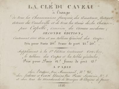 70. [PENARD]. La Clé du Caveau. Paris, 1816