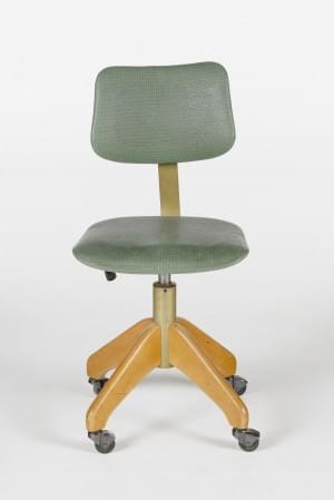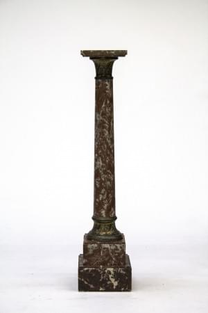 Pied en bois tourné, entretoise, garniture de tissu rouge et ver...