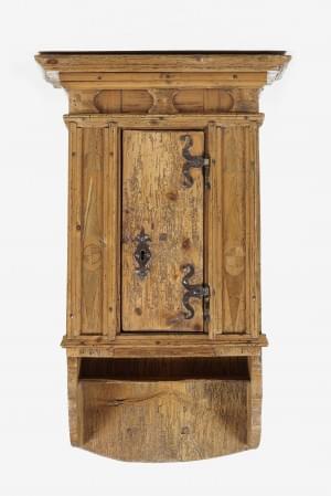 Sapin peint à décor d'un crucifix et d'entrelacs, 87x57x47 cm
