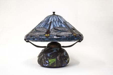 4034. Marclay, lampe dans le goût de Tiffany à décor de libellules