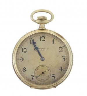 Cadran doré, aiguilles et index bâton noirs, or 750, remontoir e...