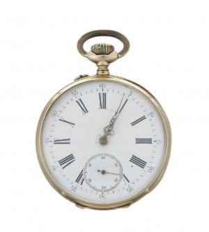 Cadran blanc émaillé, aiguilles dorées, chiffres romains noirs,...