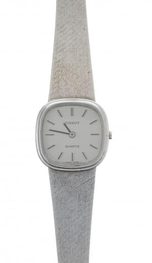 Cadran noir, aiguilles argentées, or gris 750, 28x28 mm, poids b...
