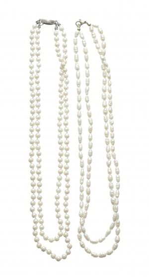 3121. Lot de deux colliers deux rangs de perles et de perles d'eau dou...