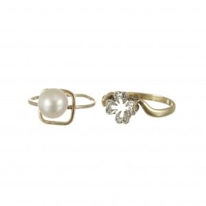 3134. Lot de deux bagues, l'une sertie d'une perle et l'autre de roses...