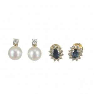 3147. Ensemble de deux paires de clous d'oreilles, l'une sertie de per...