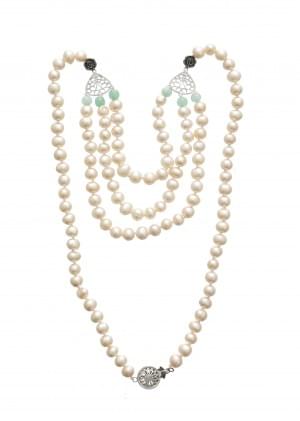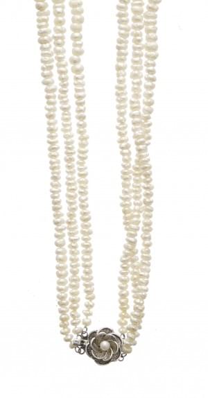 3150. Collier de perles composé en son centre d'un motif de trois rang...