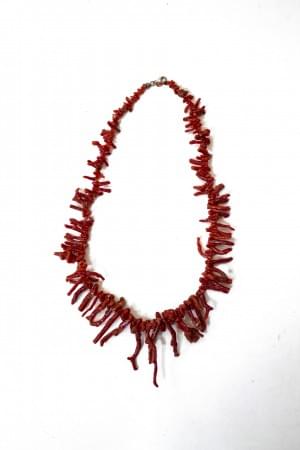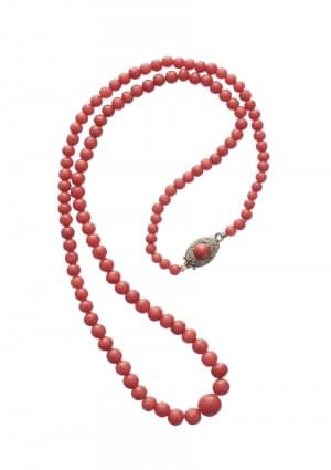 3125. Collier de perles de corail retenant un pendentif coquillage ouv...
