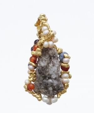 3156. Pendentif dans le goût de Gilbert Albert serti d'un motif de qua...