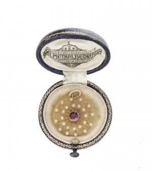Or 585, 56 zolotnik, D 2,5 cm, 5 g. On joint une broche ancienne...