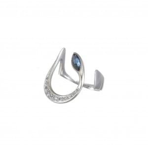 3166. Bague stylisée sertie d'un saphir taille marquise réhaussé d'une...