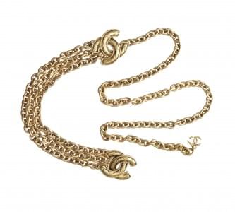 Métal doré strié, L 40 cm. On joint un collier Christian Dior, L...