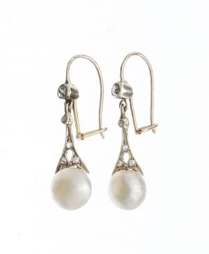 3178. Pendants d'oreilles sertis de perles rehaussées de diamants