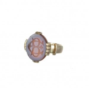 3186. Bague chevalière sertie d'une agate gravée des initiales EB