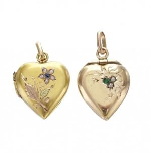 3189. Deux pendentifs porte-photos en forme de coeur sertis l'un de sa...