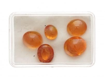ot de cinq spessartites taille cabochon sur papier (total 67,6 c...