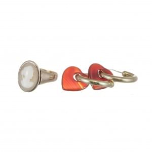 3206. Lot d'une bague sertie d'un camée et d'une paire de créoles rete...