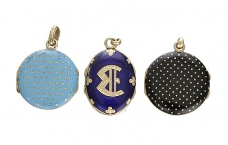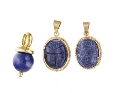 3207. Lot de trois pendentifs, l'un retenant une boule de lapis-lazuli...