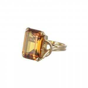 3209. Bague sertie d'un saphir synthétique orange taille rectangle