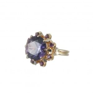 3212. Bague sertie d'un saphir synthétique violet taille brillant ento...