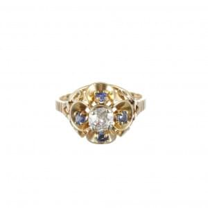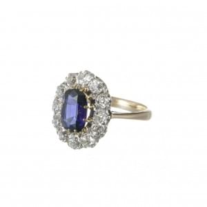 3280. Bague marguerite sertie d'un saphir prob. synthétique taille ova...