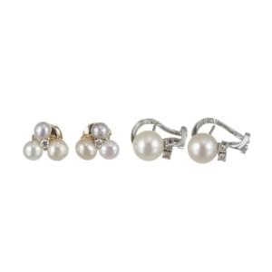 3220. Ensemble de deux paires de boucles d'oreilles serties de perles...