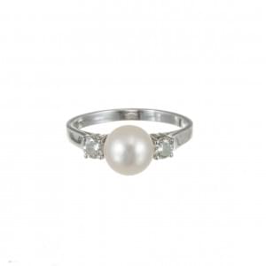 3225. Bague sertie d'une perle épaulée de deux diamants