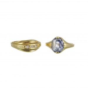 3234. Lot de deux bagues, l'une sertie de diamants et l'autre d'un sap...